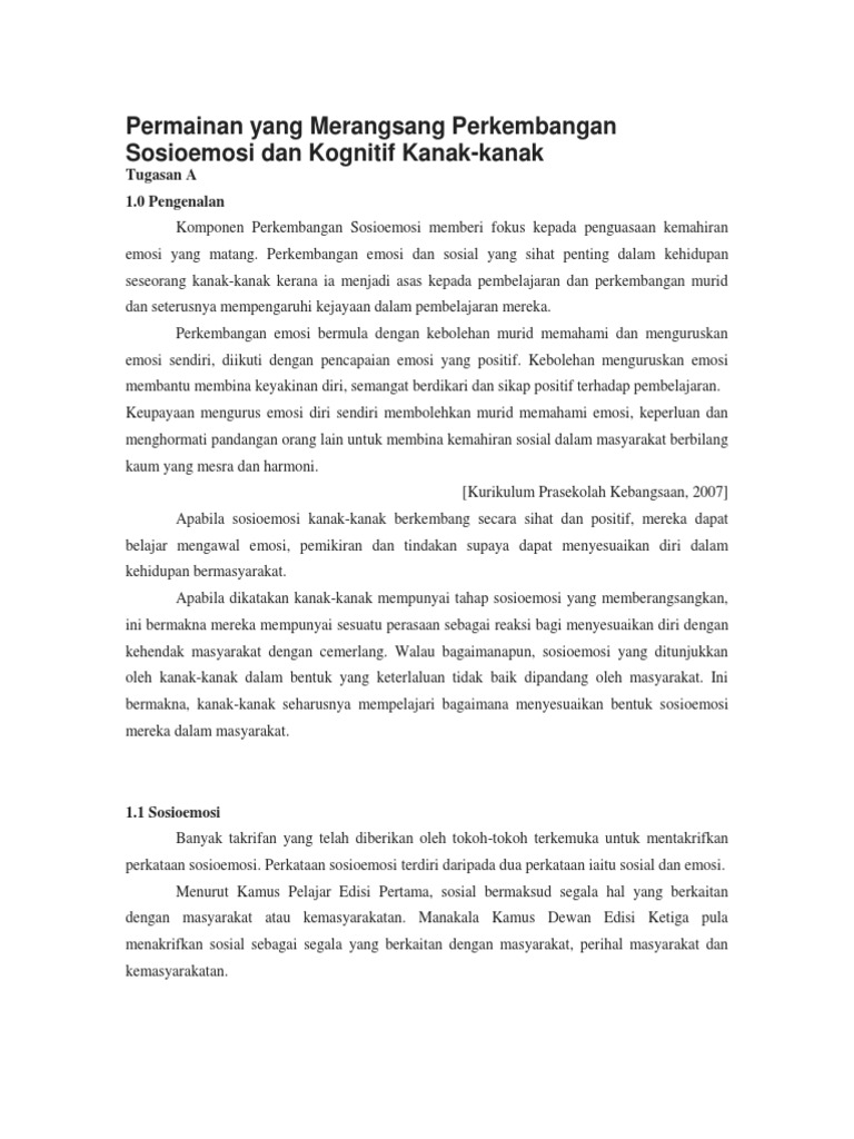 Permainan Yang Merangsang Perkembangan Sosioemosi Dan Kognitif Kanak