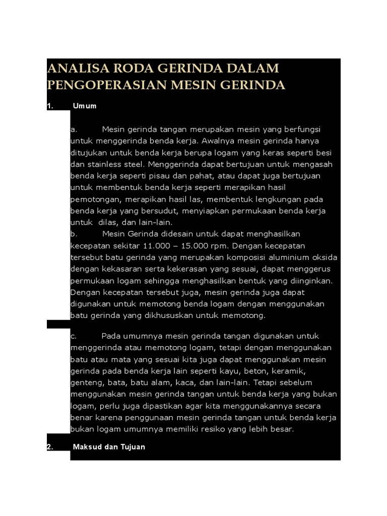 Analisa Roda Gerinda Dalam Pengoperasian Mesin