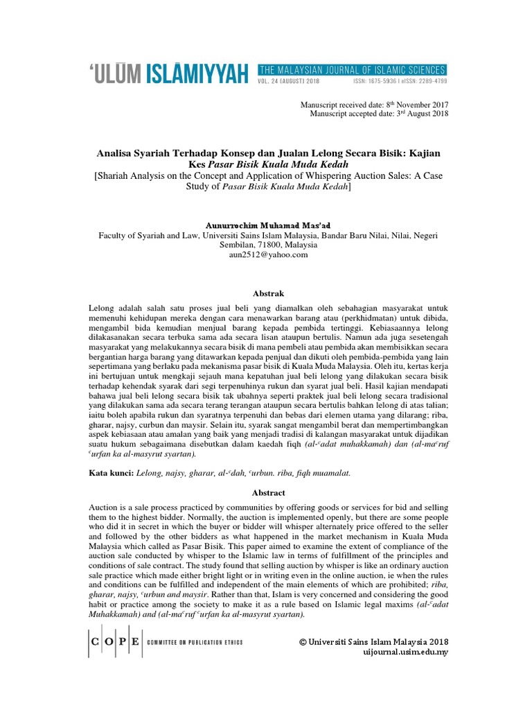 Analisa Syariah Terhadap Konsep Dan Jualan Lelong Secara Bisik