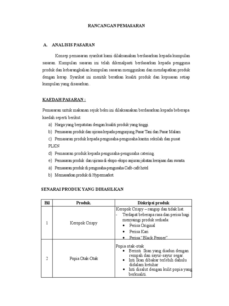 Rancangan Pemasaran