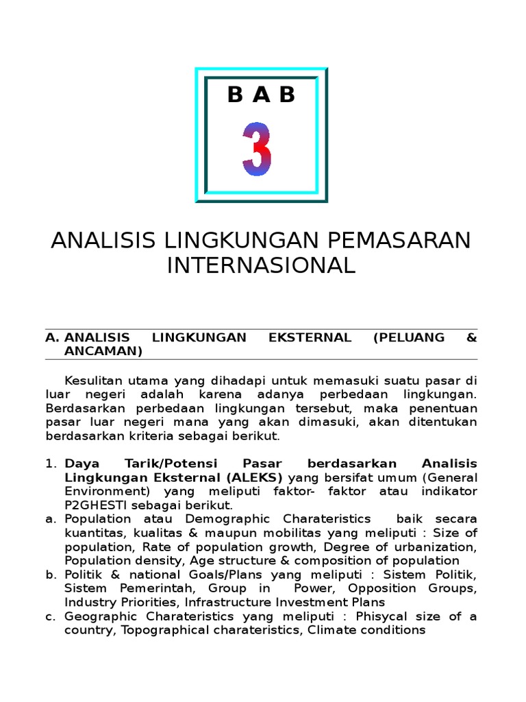 Analisis pemasaran internasional. Pemasaran internasional sendiri adalah pemasaran yang kegiatan operasinya melewati batas batas lebih dari satu negara. Para analis juga harus mengetahui informasi mengenai ekspor impor disuatu negara. Contoh makalah pemasaran internasional menilai dan menganalisis pasar. Menurut kotler dan armstrong 2009a 62 bauran pemasaran merupakan kumpulan alat pemasaran taktis.