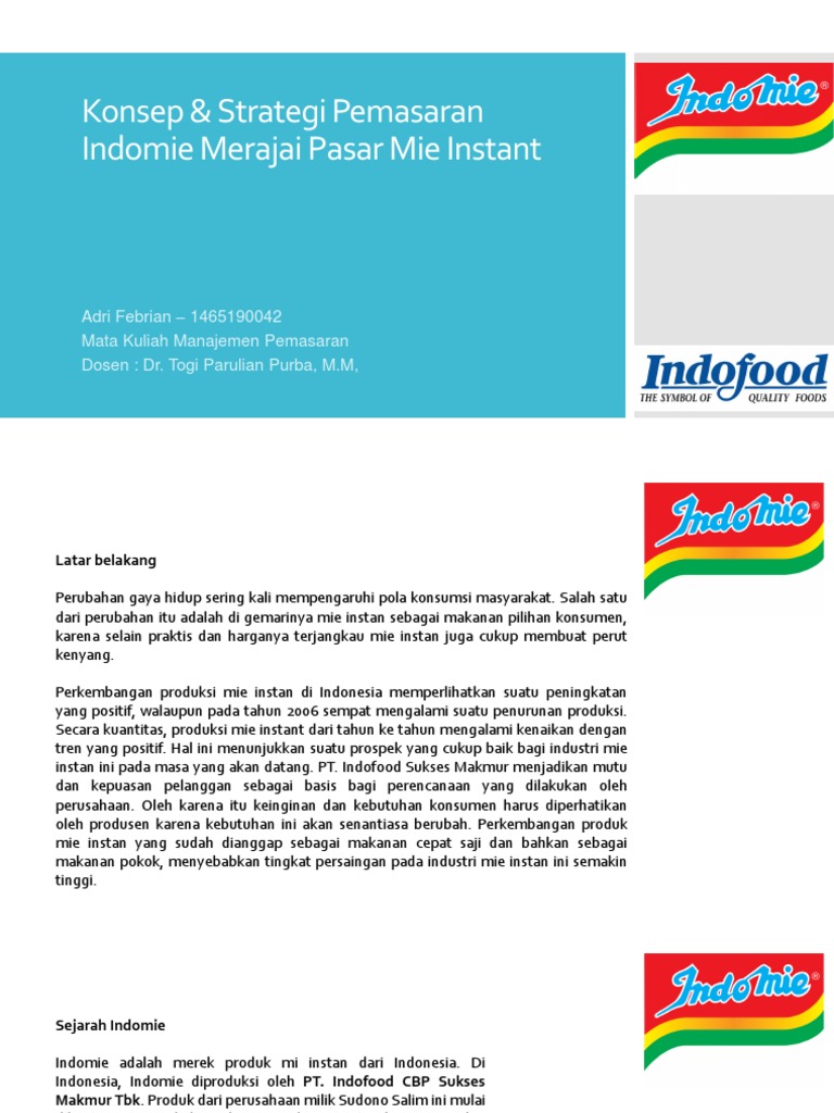 Konsep Strategi Pemasaran Indomie Merajai Pasar Mie Adri