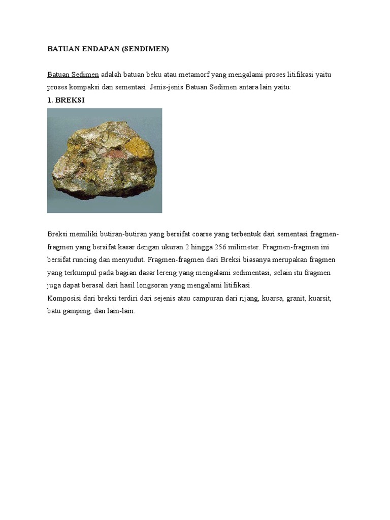 Jenis Batuan Sedimen Endapan Cek Bahan Bangunan