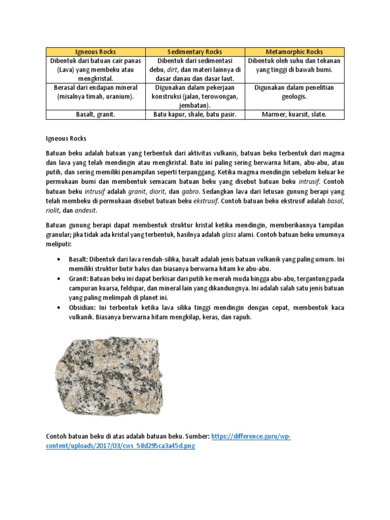 Jenis Jenis Batuan Ciri Ciri Dan Proses Terbentuknya Update