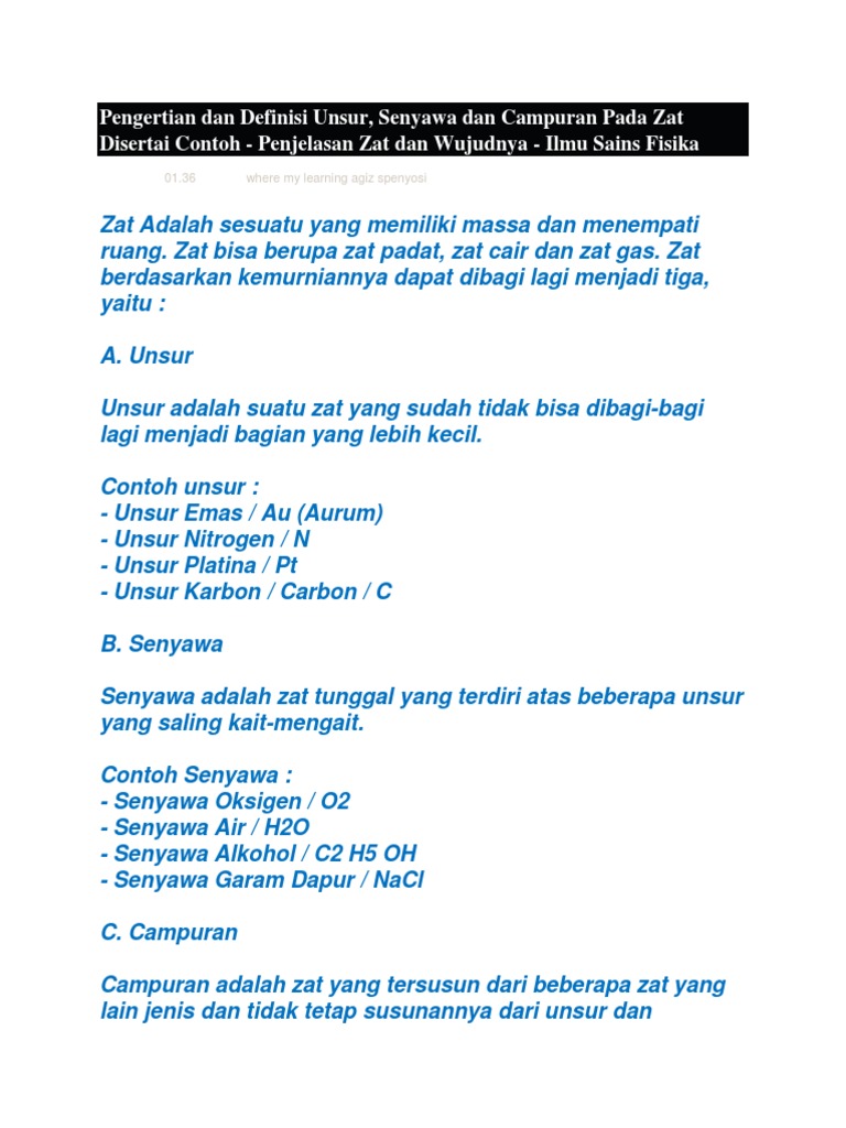 Pengertian Unsur Senyawa Campuran Fungsi Contoh Soal Ujian