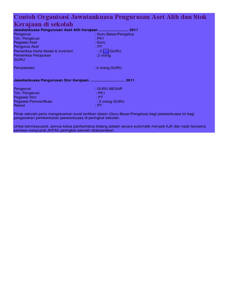 Contoh Organisasi Jawatankuasa Pengurusan Aset Alih Dan Stok
