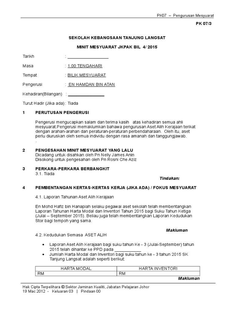 Minit Mesyuarat Jkpak Bil 4 2015