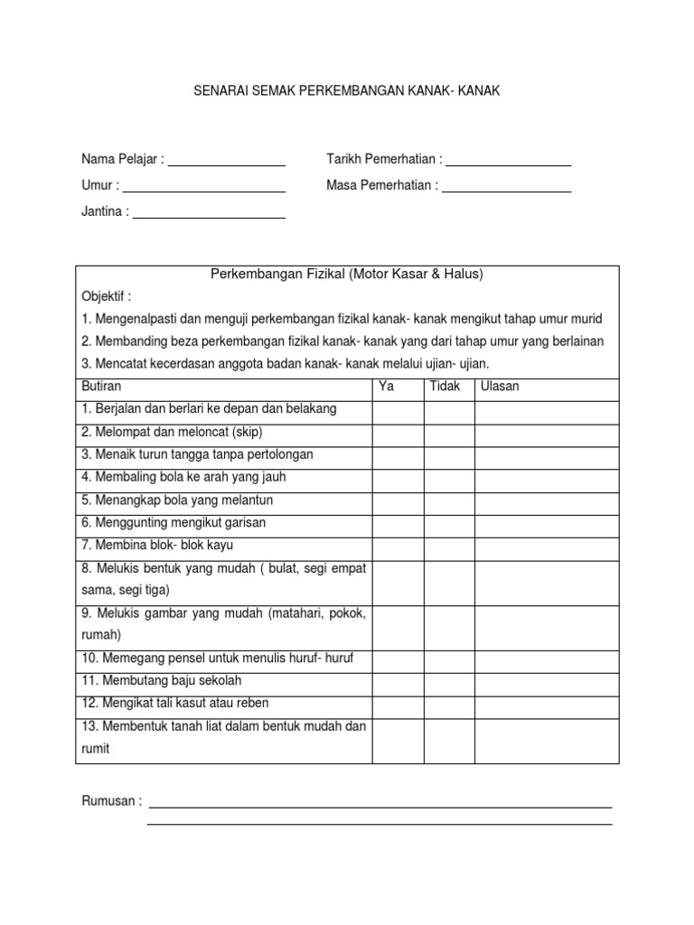 Senarai Semak Perkembangan Kanak Kanak 2 3 Tahun