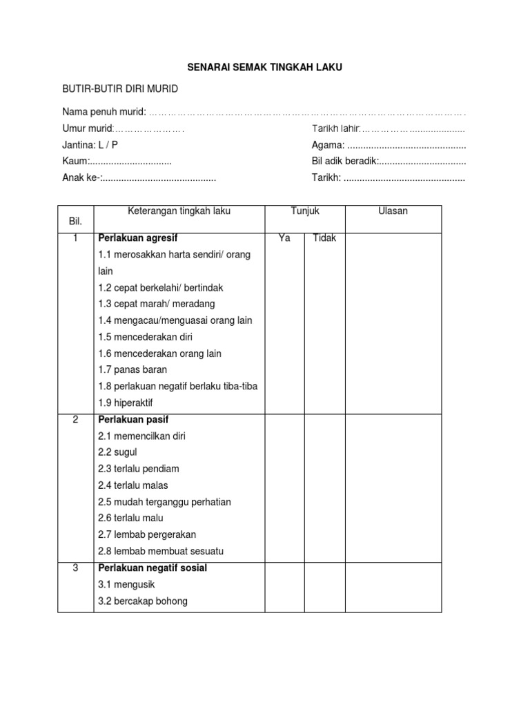 Senarai Semak Tingkah Laku Murid