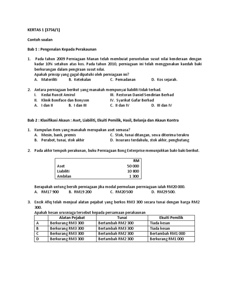 Kertas 1 3756 1 Contoh Soalan Bab 1 Pengenalan Kepada Perakaunan