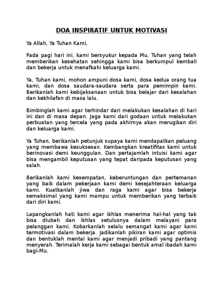 Di surat al kahfi ayat 110. Keikhlasanlah yang memberi bobot pada apapun yang kita kerjakan. Berikut ini urutan doa sebelum melakukan aktifitas di kantor atau ditempat kerja supaya diberi keselamatan kemudahan kelancaran dan hasil yang baik. Imam syafi i pernah memberi nasihat kepada seorang temannya wahai abu musa jika engkau berijtihad dengan sebenar benar kesungguhan untuk membuat seluruh manusia ridha suka maka itu tidak akan terjadi.