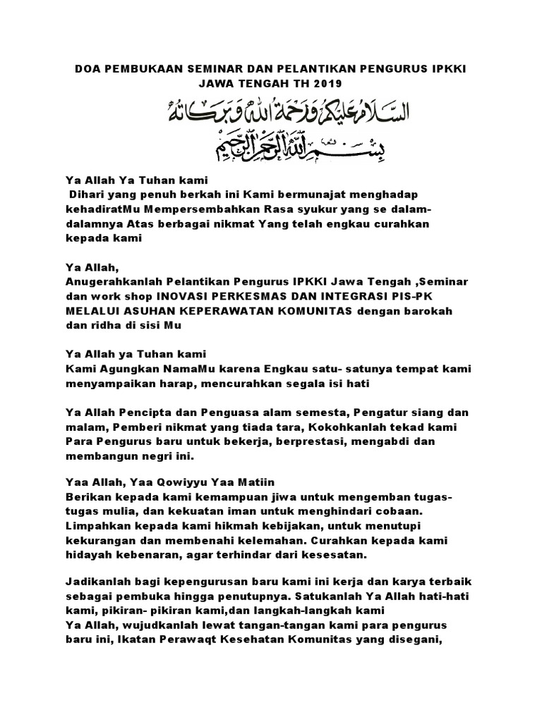 Doa Pembukaan Seminar Dan Pelantikan Pengurus Ipkki Jawa Tengah Th 2011 Docx
