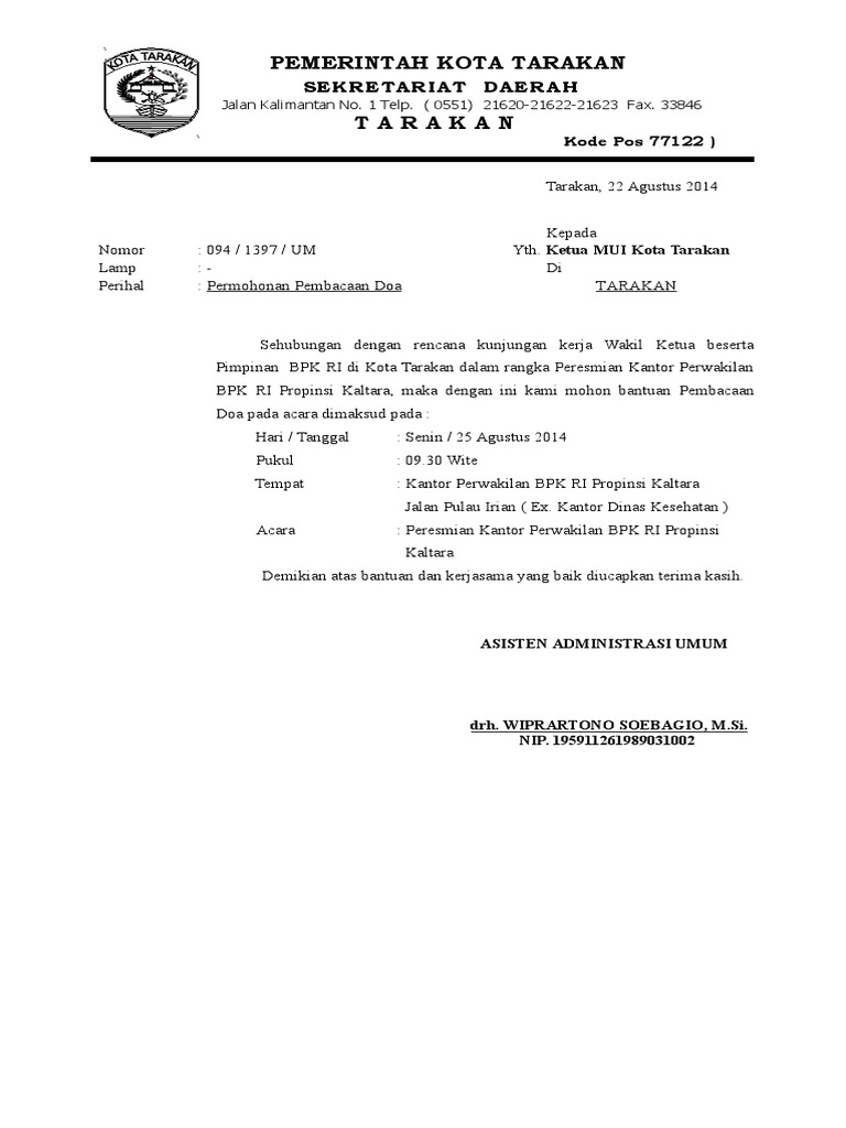 Surat Permohonan Bantuan Pembacaan Doa 2014
