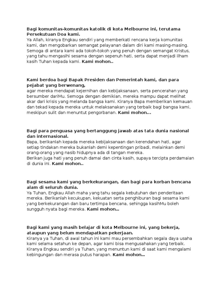 Contoh Doa Katolik Pada Saat Mencari Kerja