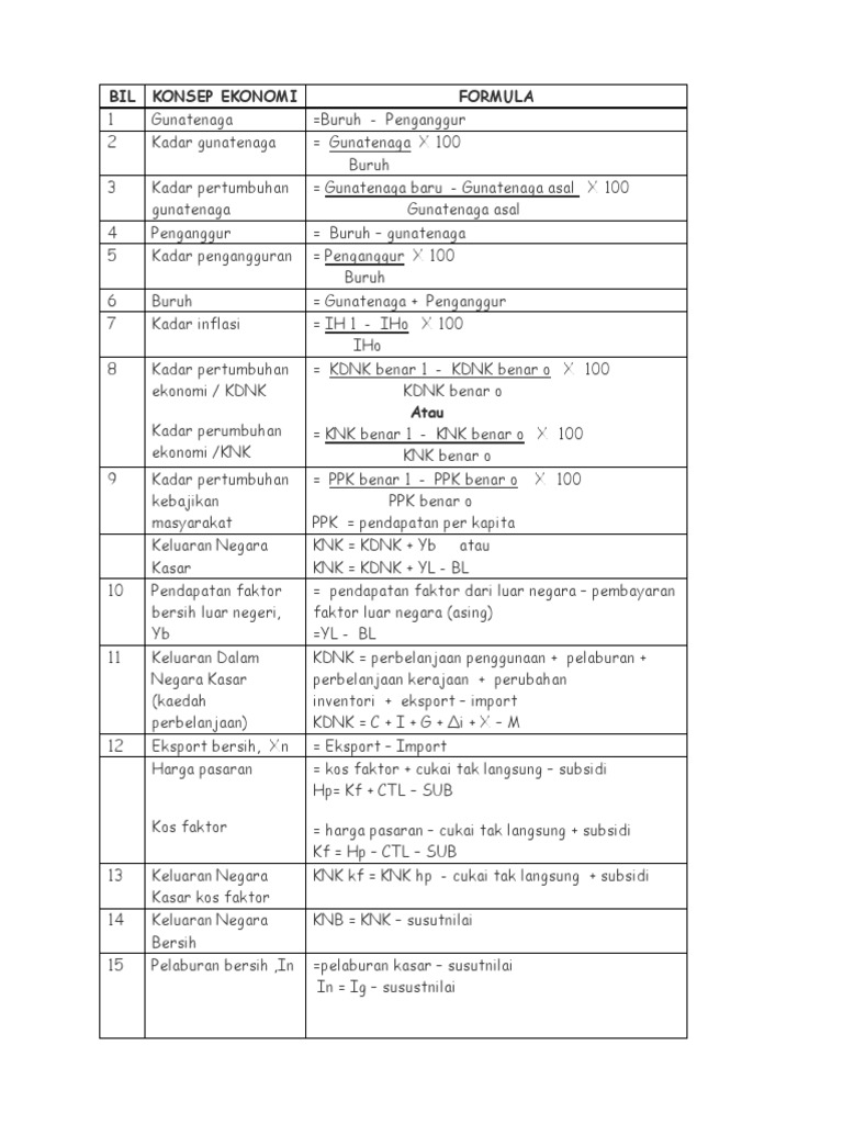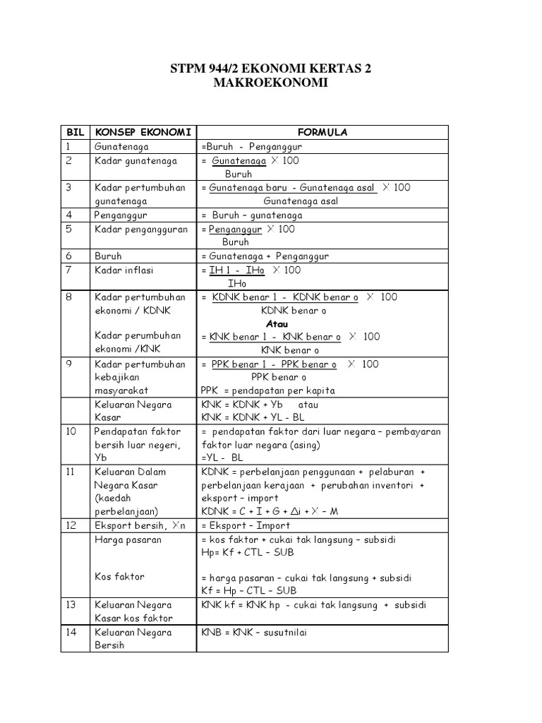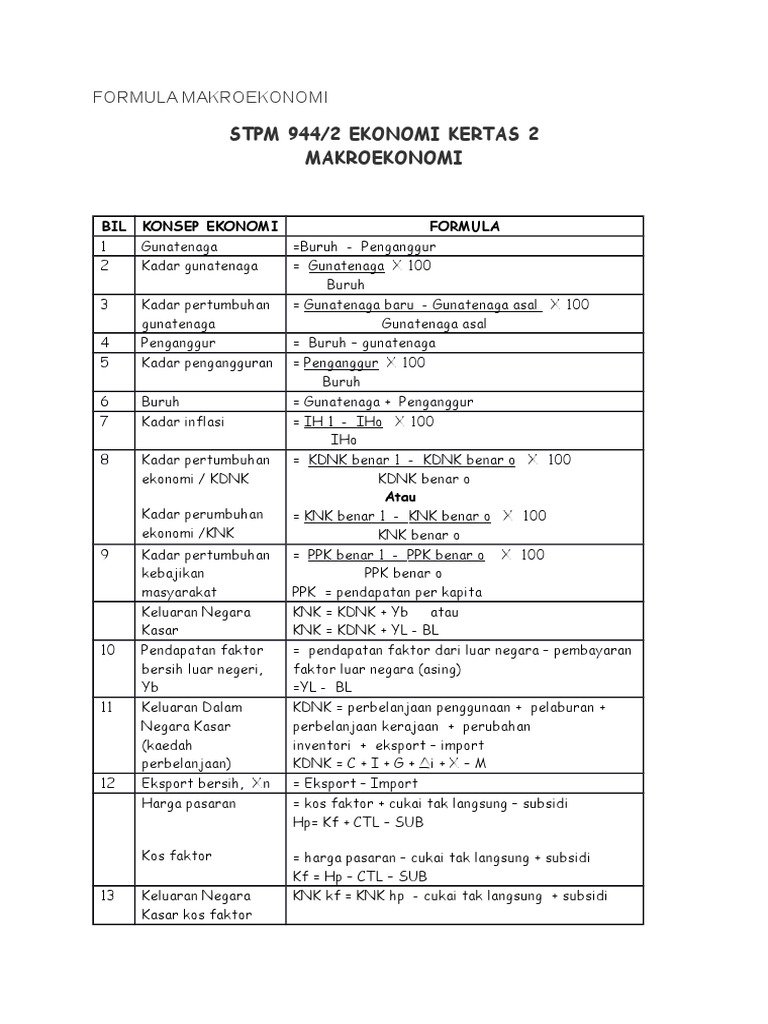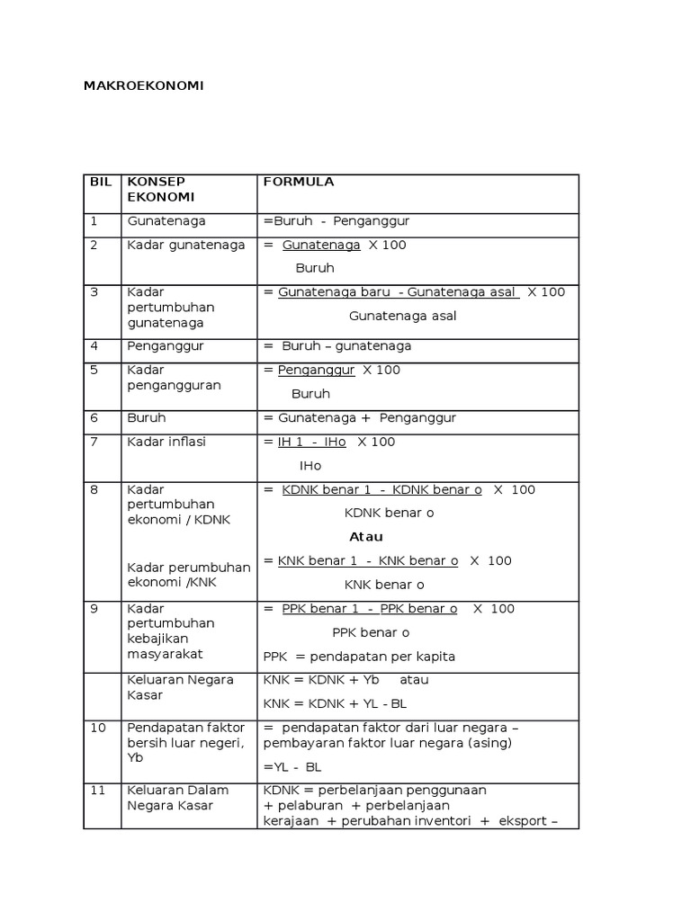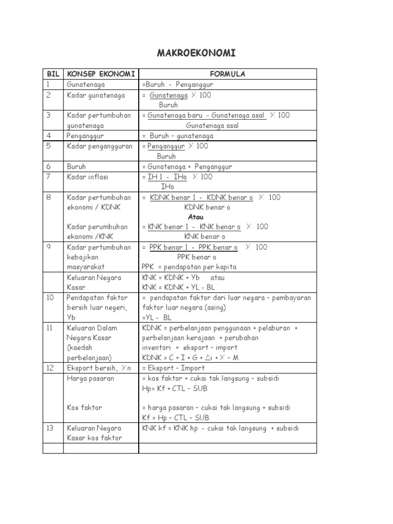 Formula Makroekonomi Docx Formula Makroekonomi Bil 1 2 3 4 5 6 7 8 9 10 11 12 Konsep Ekonomi Gunatenaga Kadar