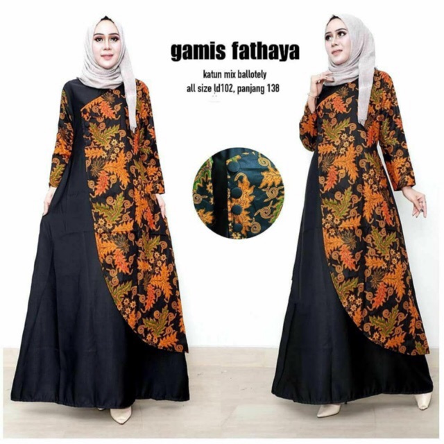 Baju Gamis Batik Fathaya Bahan Katun Kombinasi Harga Terjangkau