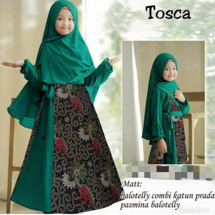 Gamis Syari Anak Usia 7 9 Tahun Plus Hijab Gamis Kombinasi Batik