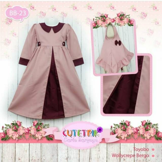 Hijab Rossa Kids Marun Set Baju Maxi Bergo Anak Baju Gamis Muslim
