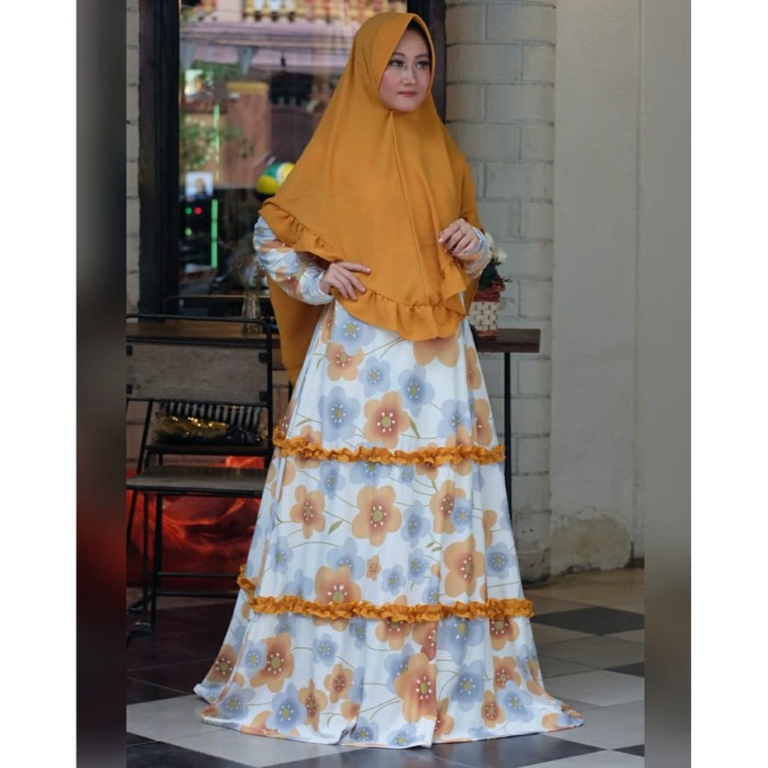 Jual Baju Gamis Syari Motif Bunga Terbaru 2020 Adem Melar Set