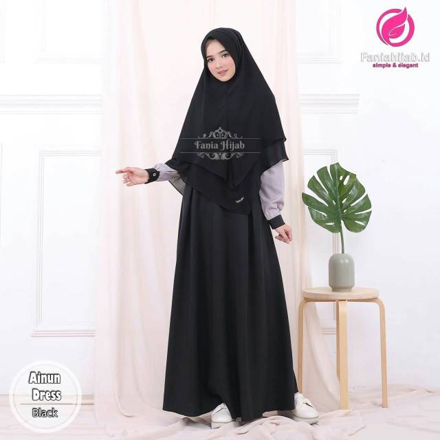 Ainun Dress By Fania Hijab Gamis Polos Twotone Dress Remaja