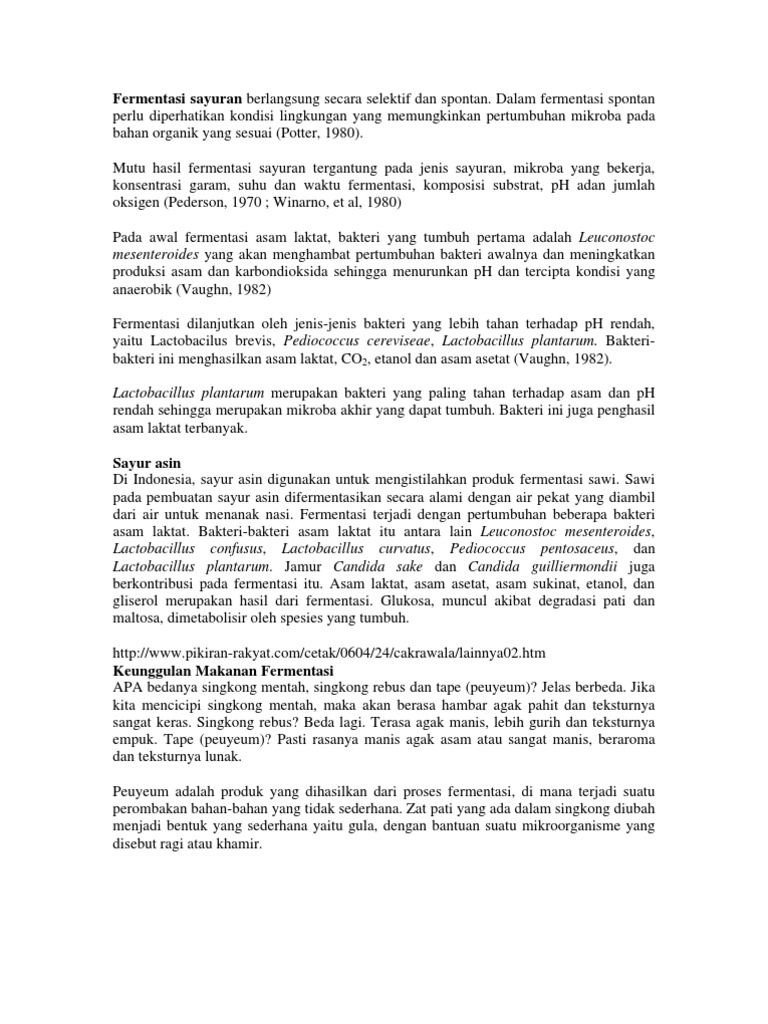 Fermentasi Sayuran Berlangsung Secara Selektif Dan Spontan
