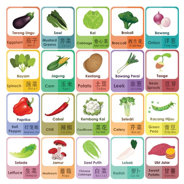 Poster Belajar Mengenal Sayuran 2 Bahasa Belajar Bahasa Kosakata