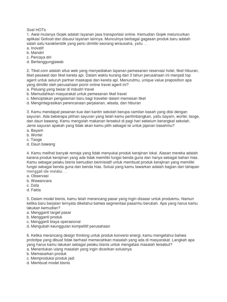 Contoh Soal Hots Versi Sendiri Belajar Tiada Henti
