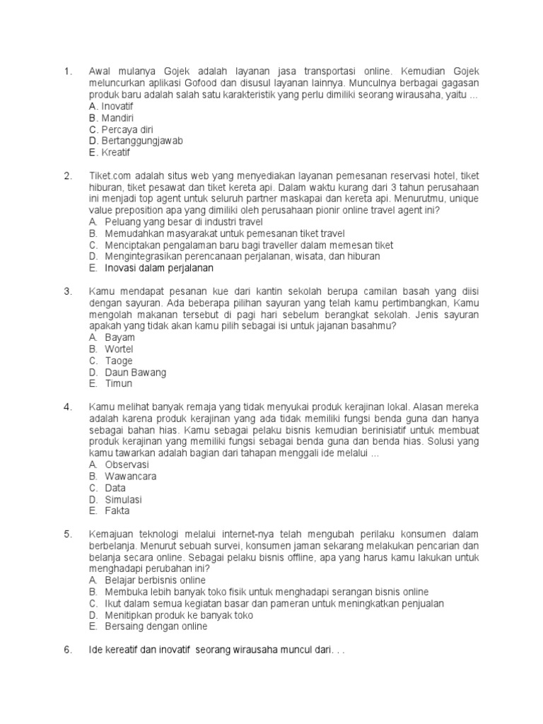 Soal Usbn Usp Sma Smk Prakarya Dan Kewirausahaan 2020 Jawaban