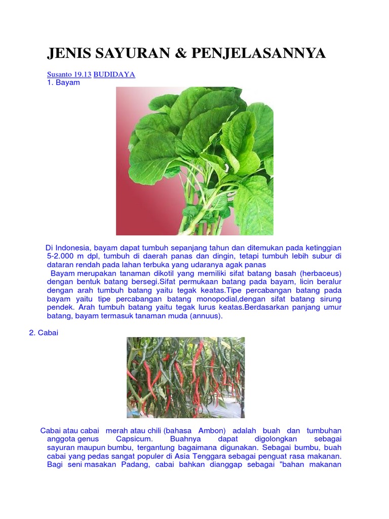Sultanasyfr Jenis Sayuran Penjelasannya