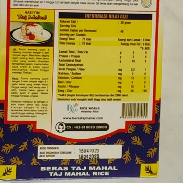 Kalori Beras Taj Mahal 125 Gr Nasi Berastajmahal Com Facebook