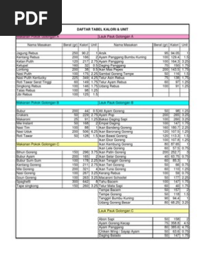 Tabel Kalori