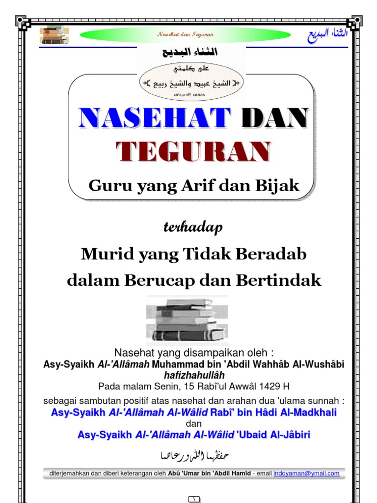 Nasehat Dan Teguran Keras Guru Yg Arif Bijak Terhadap Murid Yg