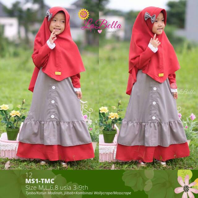 Gamis Anak Terbaru Abu Merah Toyobo Katun Labella Shopee Indonesia