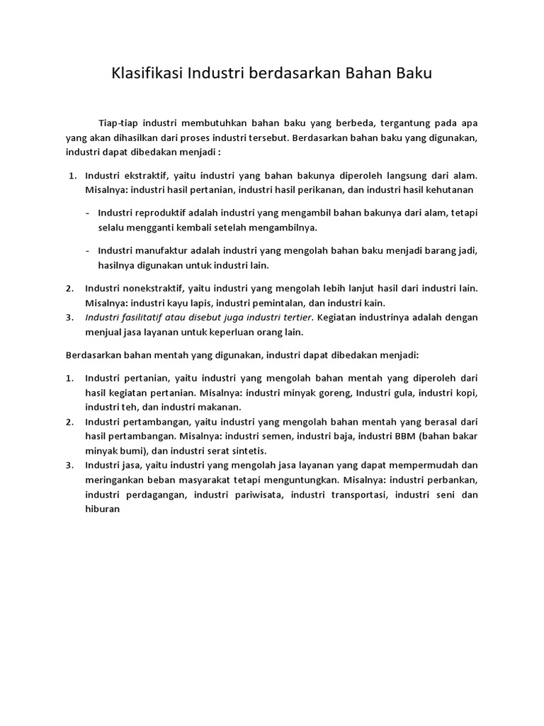 Klasifikasi Industri Berdasarkan Bahan Baku