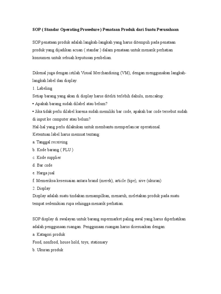 Klasifikasi Penataan Produk Sop Penataan Produk Dari Suatu Perusahaan