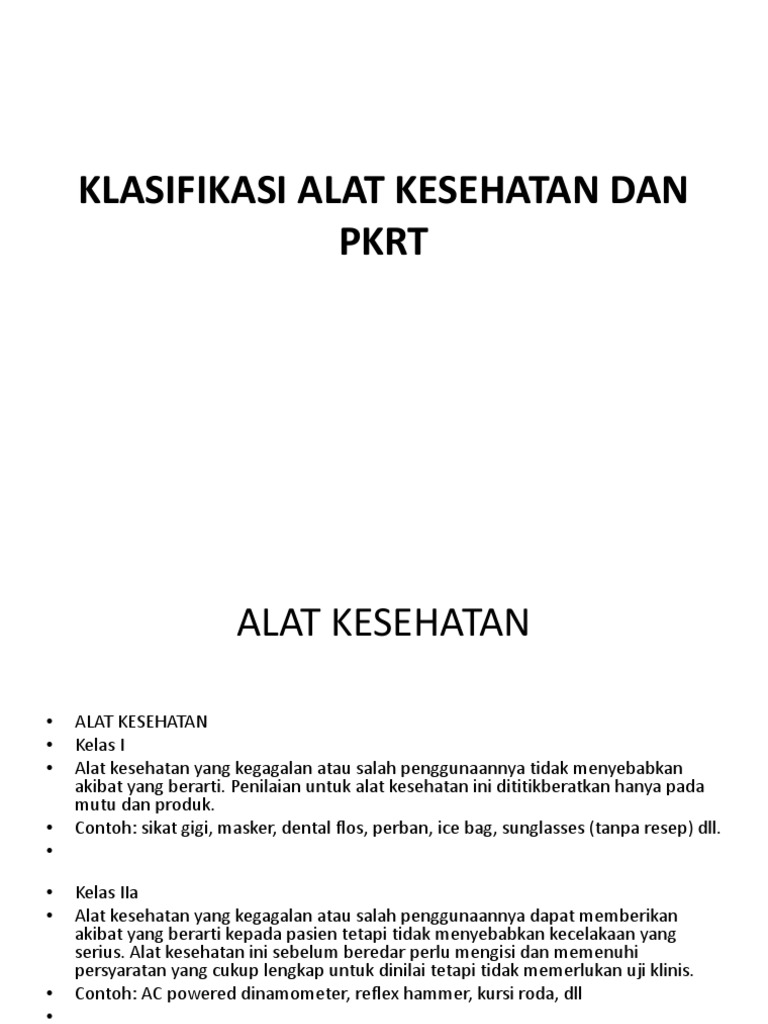 Klasifikasi Alat Kesehatan Dan Pkrt