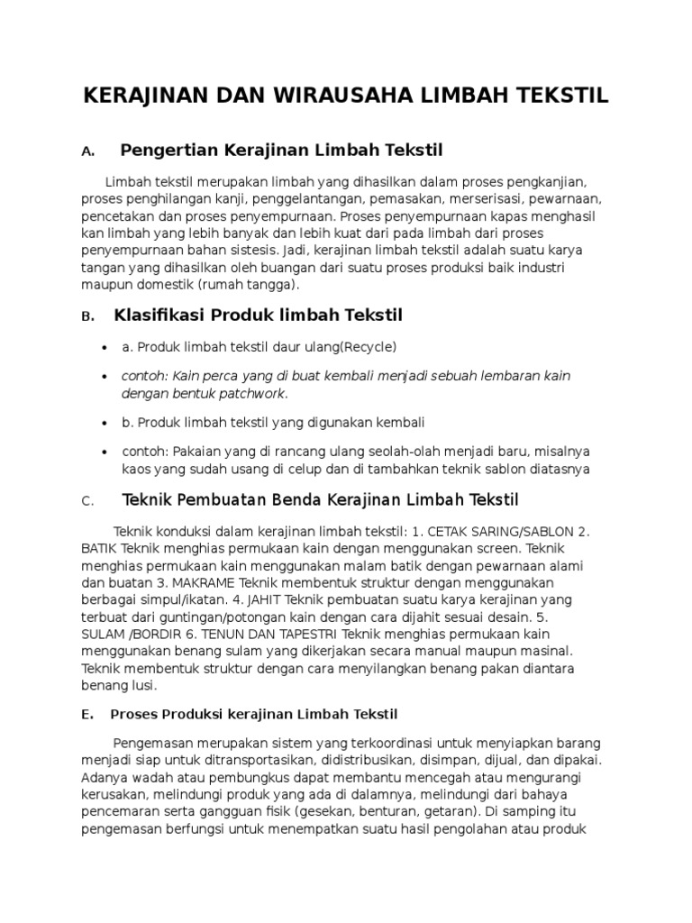 Kwu Bab 1 Kerajinan Dan Wirausaha Limbah Tekstil