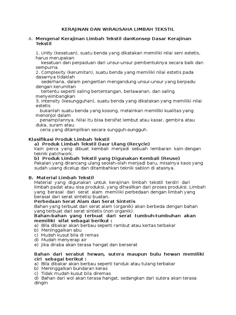 Kwu Bab 1 Kerajinan Dan Wirausaha Limbah Tekstil