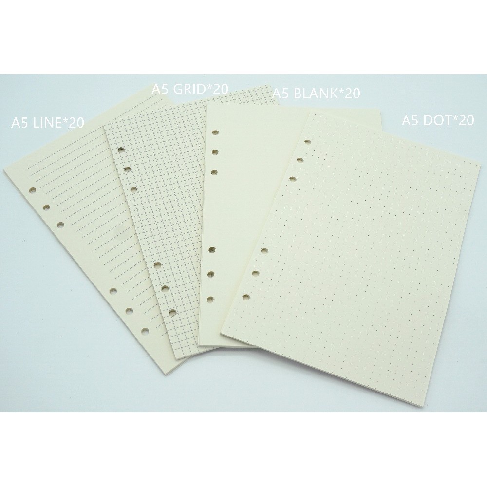 Refill Loose Leaf Kertas A5 A6 6 Lubang Polos Garis Titik Kotak