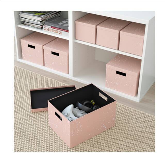 Ikea Tjena Kotak Penyimpanan Bertutup 25x35x20cm Warna Merah Muda