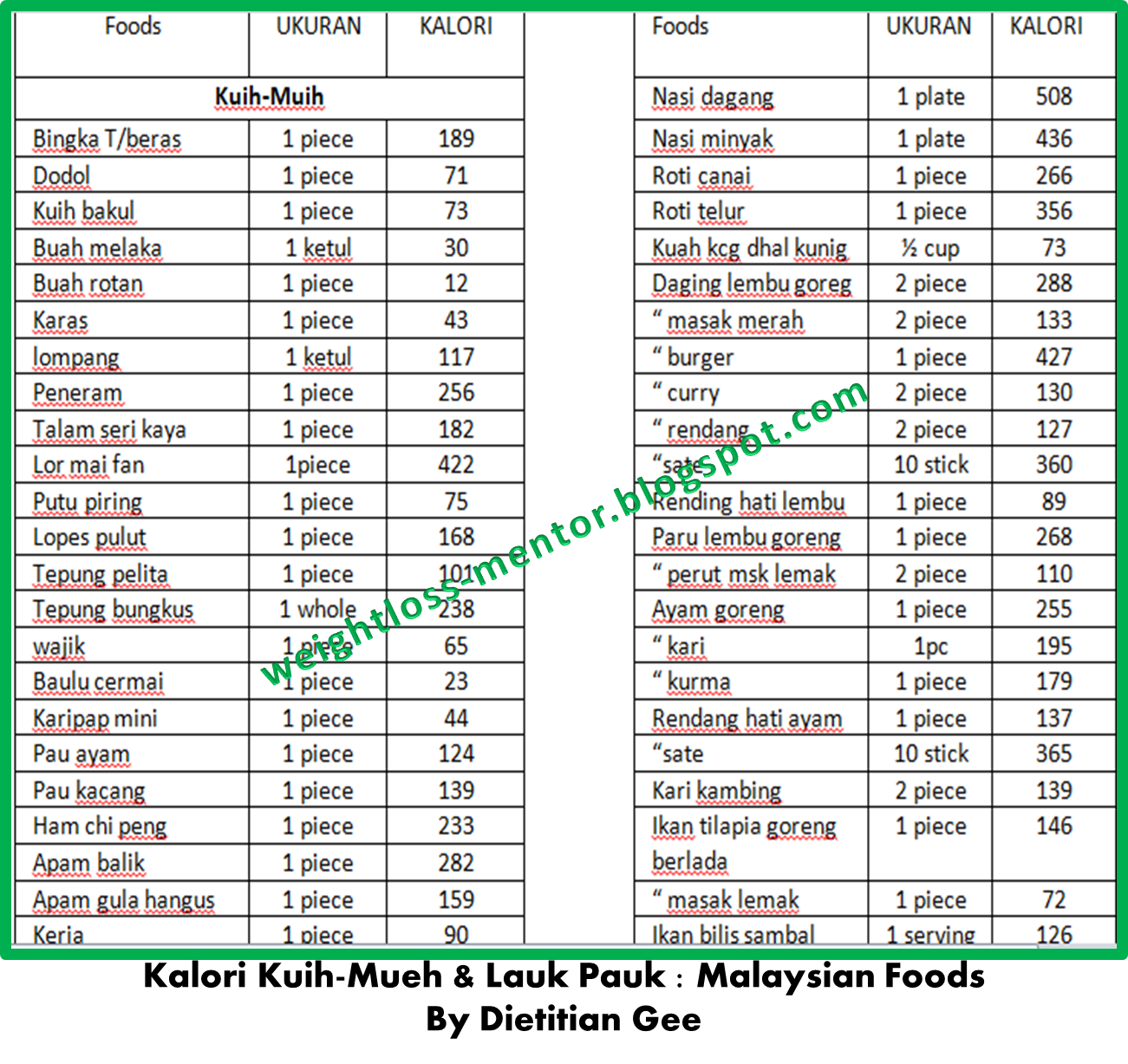 Dietitian Gee Mengetahui Kalori Makanan Supaya Anda Boleh Kurus