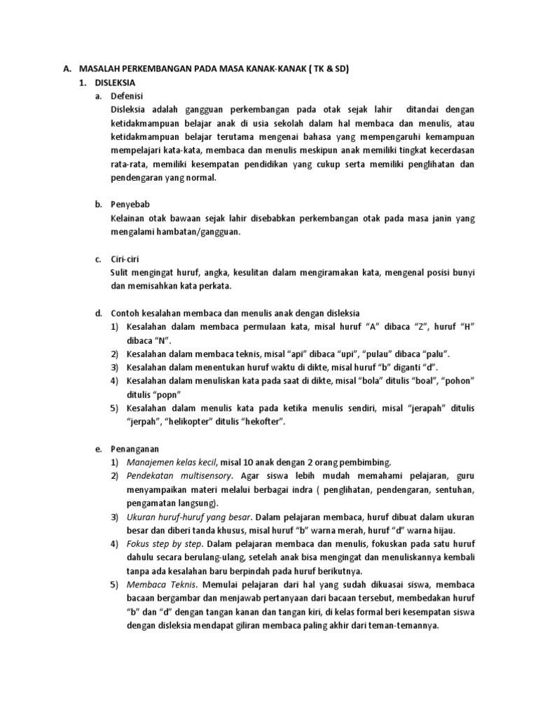 Permasalahan Perkembangan Pada Masa Kanak Kanak