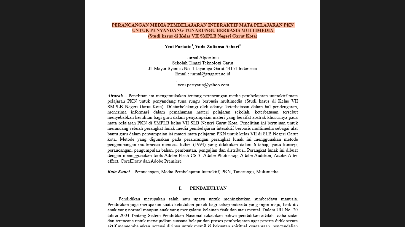 Etalase Tridharma Media Pembelajaran Interaktif Mata Pelajaran Pkn
