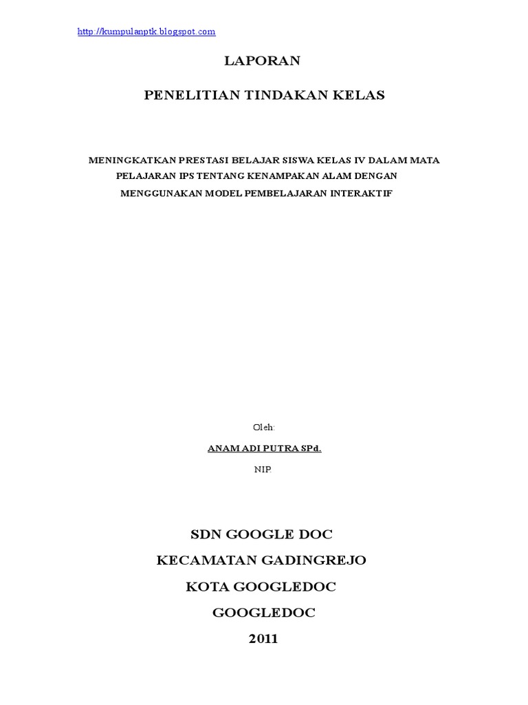 Laporan Penelitian Tindakan Kelas Meningkatkan Prestasi Belajar Siswa Kelas Iv Dalam Mata