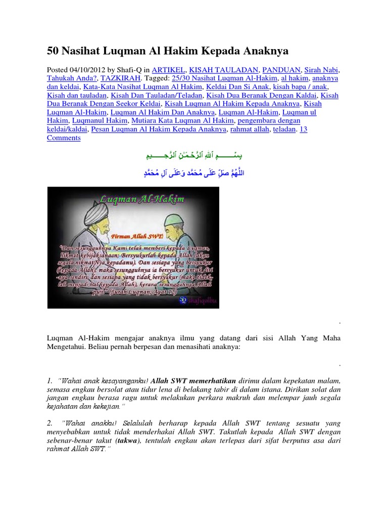 50 Nasihat Luqman Al Hakim Kepada Kisah Teladan Islam Facebook