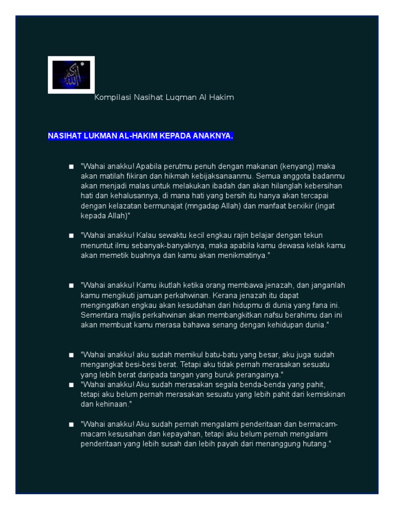 Nasihatlukmanalhakimuntukanaknya Instagram Posts Gramho Com