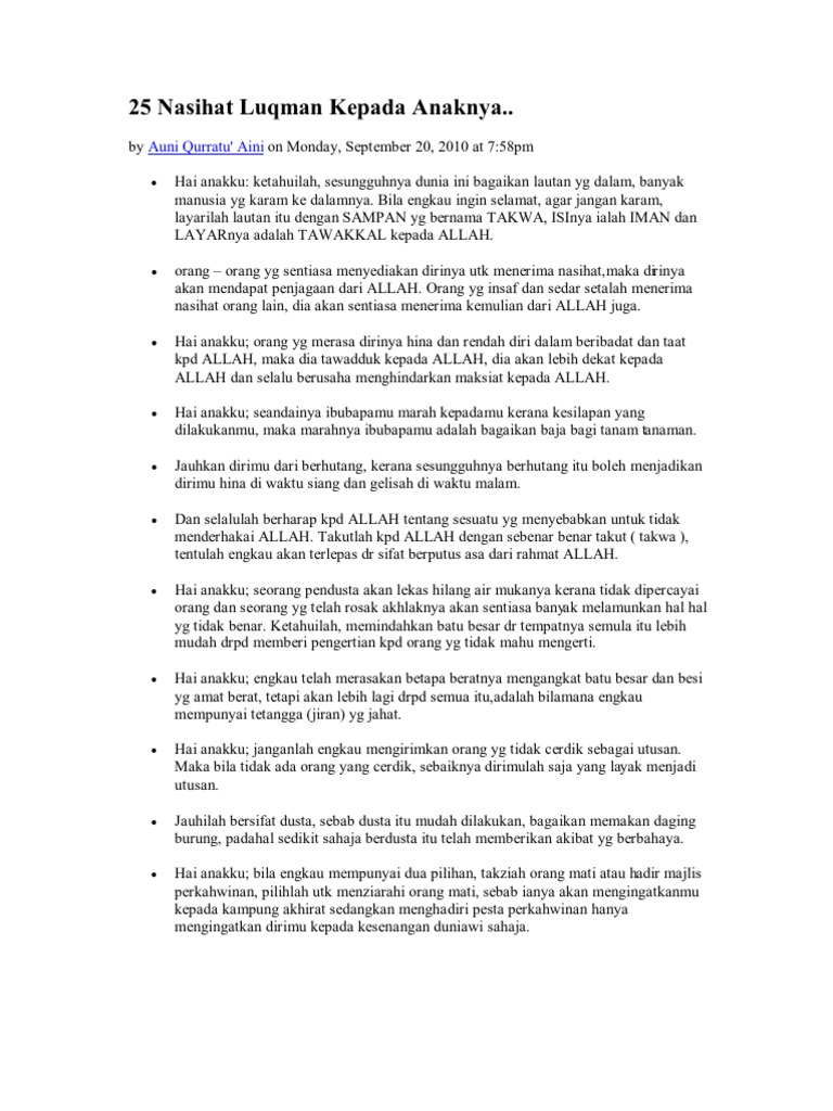Inspirasiku 25 Nasihat Luqman Kepada Anaknya