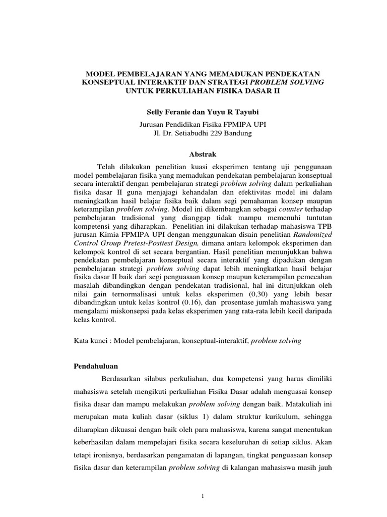 Model Pembelajaran Yang Memadukan Pendekatan Konseptual Interaktif Dan Strategi Problem Solving Untuk Perkuliahan Fisika Dasar Ii
