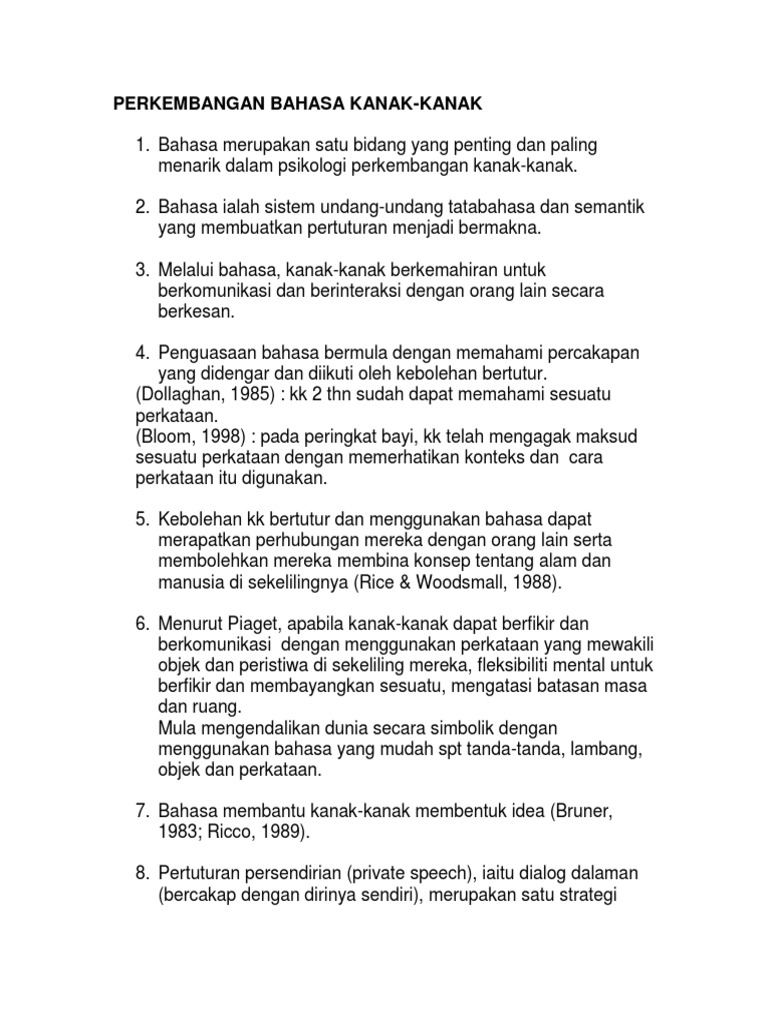Perkembangan Bahasa Kanak Kanak Docx Document