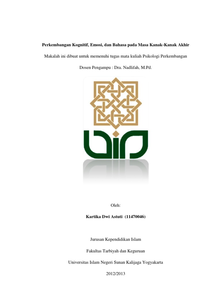 Makalah Psikologi Perkembangan Masa Kanak Kanak Akhir